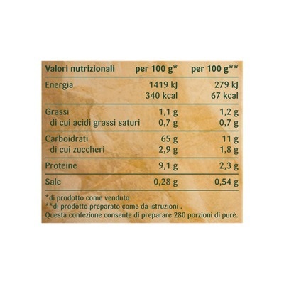 Preparato per purè di patate in fiocchi. Fatto solo con patate di qualità per darti un sapore autentico e un gusto unico. Senza glutine. Ideale per preparare gustosi contorni o dare spazio alla creatività.