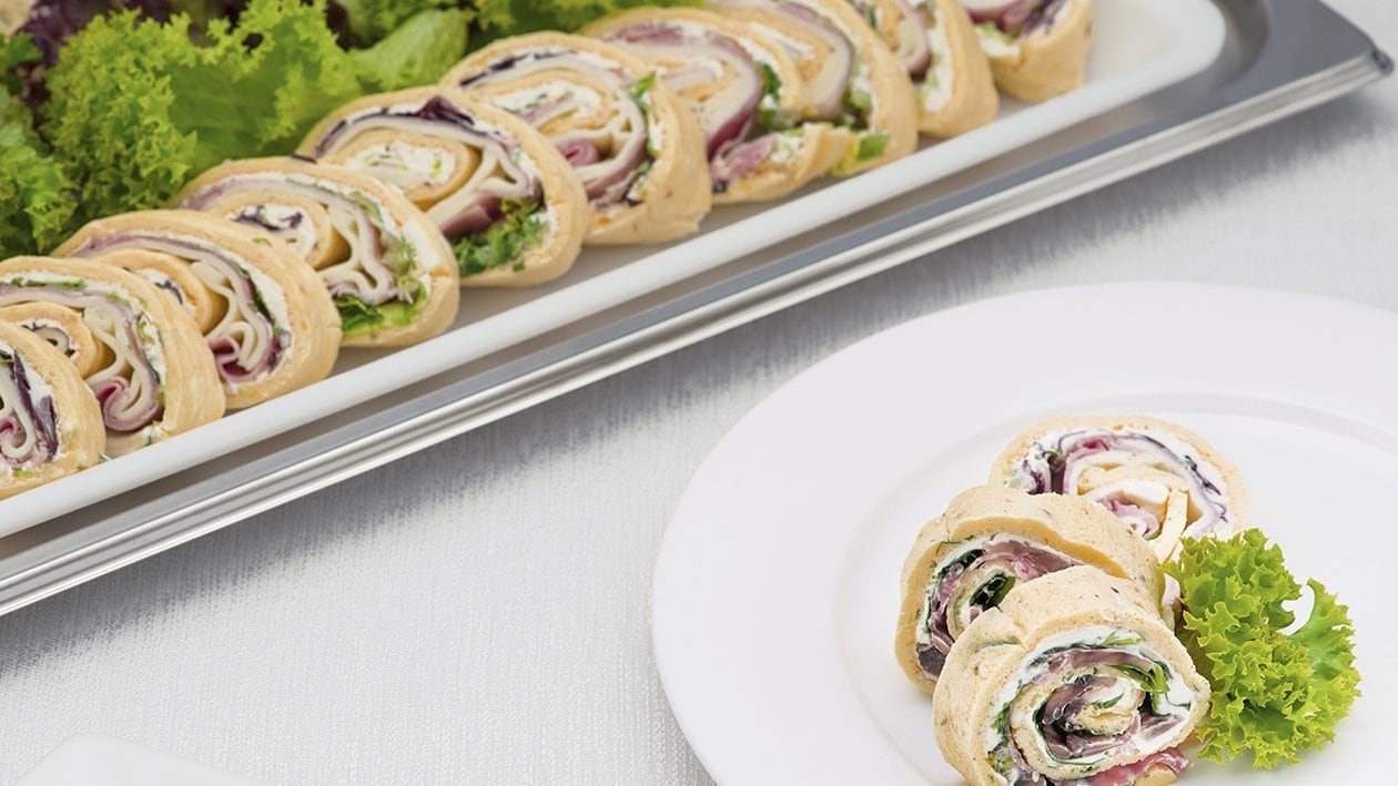 OMELETTE ARROTOLATE IN 3 VARIANTI (Prosciutto e formaggio – salsiccia e funghi – salame e rucola)